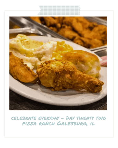 At Pizza Ranch, of all places, after days of travel and emotion, I skipped the pizza and scooped fried chicken, mashed potatoes with gravy, and corn onto my plate. As a kid, I couldn’t handle my food touching. School lunch trays were my favorite, each item in its assigned spot. My boys later taught me to stir corn into mashed potatoes and gravy. I always found it ridiculous.