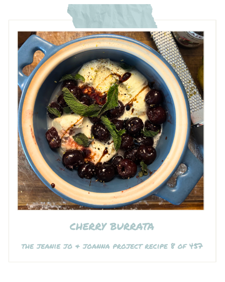 Some recipes feel more like arranging than cooking and I’m not mad about it. This one was as easy as it was beautiful. Sweet cherries, creamy burrata, a drizzle of balsamic glaze, flaky sea salt, a twist of black pepper, and fresh mint served over toasted slices of homemade French bread (thank you, Volume 3). It came together quickly but felt like something you’d order at a little café where someone calls you “friend” and refills your sparkling water before you ask.
