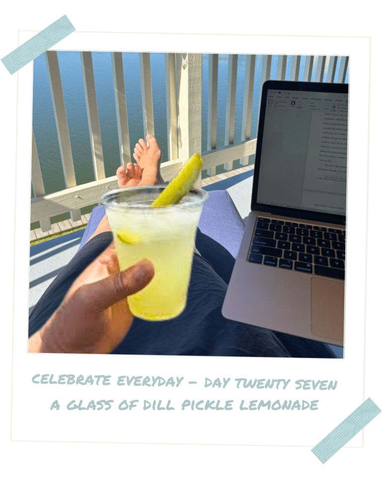 Maybe creativity doesn’t come from doing more. Maybe it grows from doing the same simple things every day with great love. A journal. A porch. A funny little drink with pickle brine and ice cubes. All of it is practice. All of it matters.