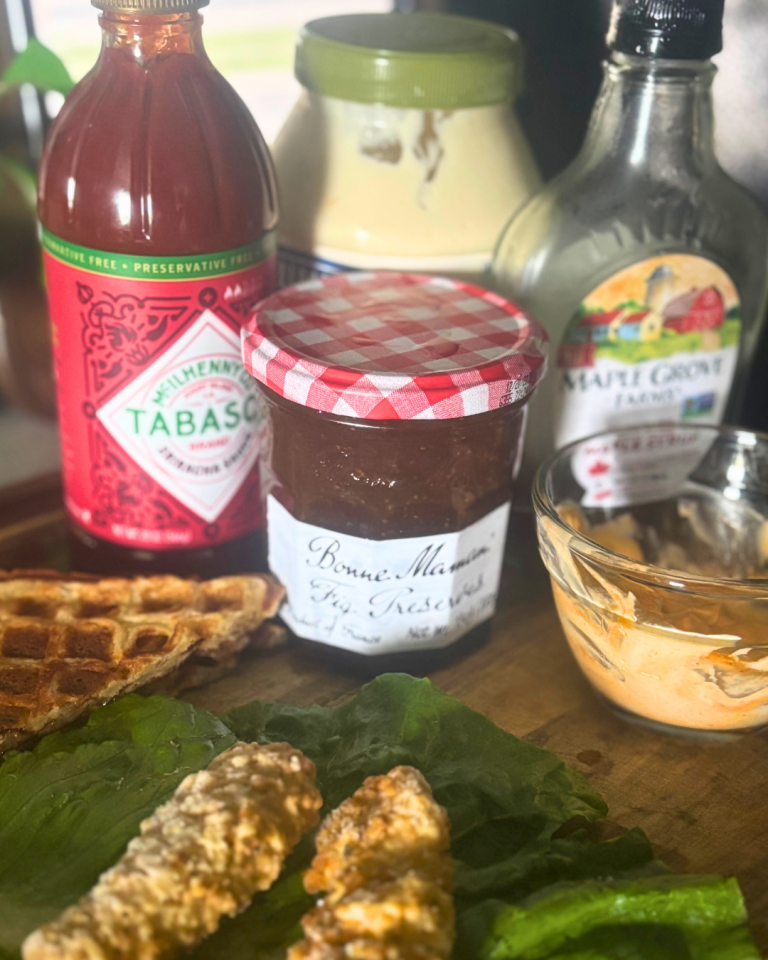 For me, shalom shows up in surprising places. Not in yoga studios or silent retreats or even serene walks on the beach (though those are lovely, too). For me, shalom is often found in the kitchen. In the sizzle of chicken in the skillet. In the rhythm of chopping greens. In the quiet joy of assembling something good to share. This week, shalom looked like waffles, chicken, and fig preserves. It looked like sweet meeting savory. It tasted like comfort and creativity on the same plate.