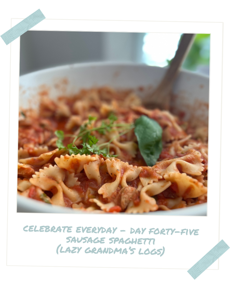 That night in my kitchen, it was less about the meal and more about proving to myself that I could still show up. The lasagna noodles for my grandma’s sausage rolls were still in the pantry, but boiling, rolling, and baking felt like running a marathon in heels. So I did what resilience has taught me time and again: I pivoted. Out came the dutch oven, in went the sliced sausage, peppers, and tomatoes of possibility. It wasn’t fancy, but it was dinner, and sometimes that’s the victory.