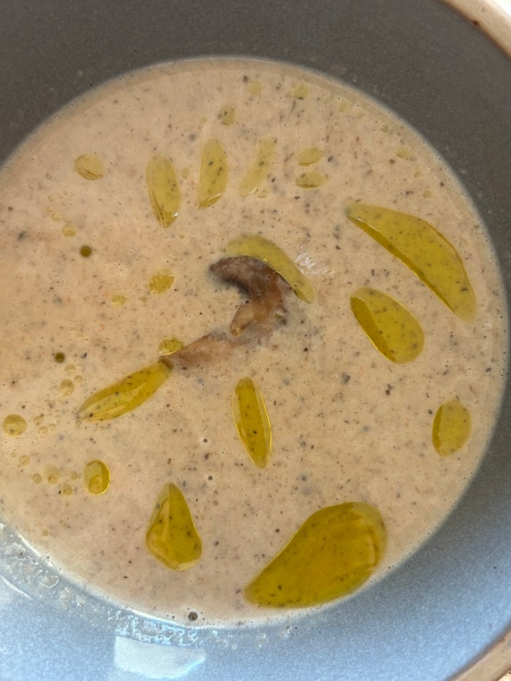 Breakfast will be a Protein Shake, the kind of start that asks nothing more than a good blend and a moment to breathe before the day begins. Dinner, though, leans into comfort — a bowl of Mushroom Bisque, creamy and woodsy with the depth that only mushrooms can give. It’s a small bowl, paired with a handful of grapes, but it’s enough. Some meals aren’t about fullness; they’re about slowing down. About noticing how warmth and flavor can make even an ordinary Thursday feel gentle.