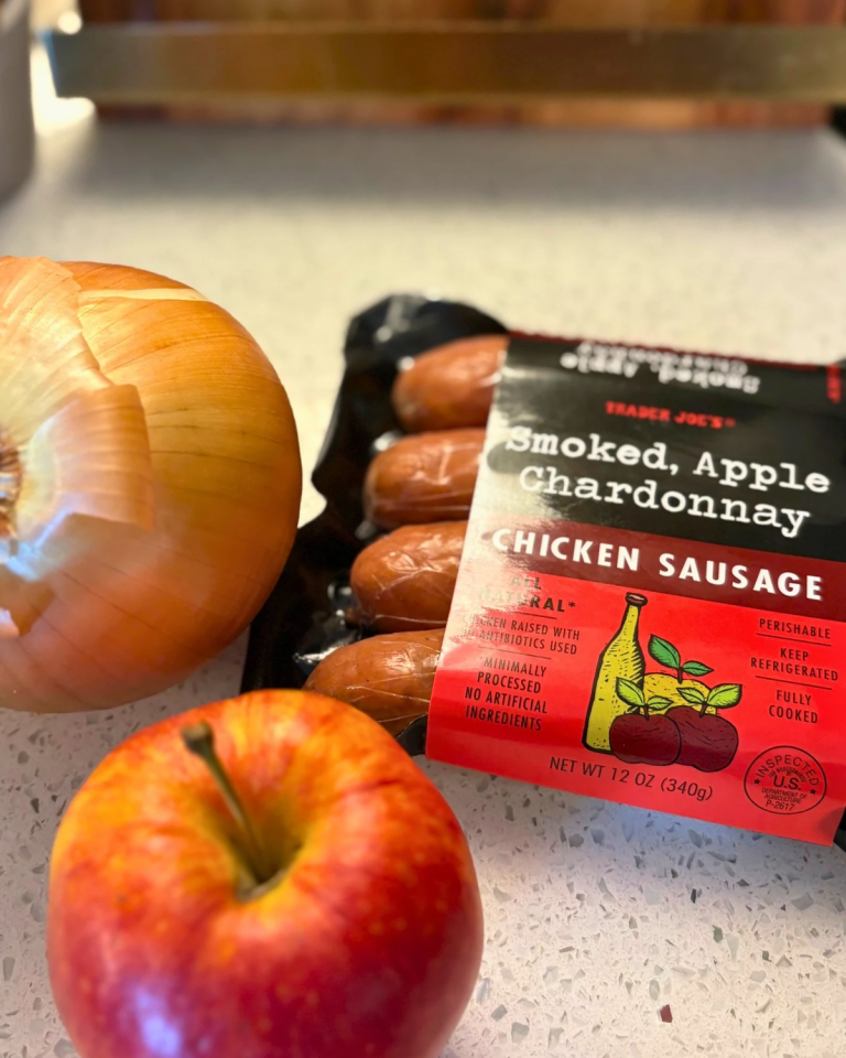 There’s a moment every fall when the air shifts — just slightly — and suddenly, brunch needs to taste like a hug. That’s where this skillet comes in. Sweet apples, caramelized onions, and Trader Joe’s apple chicken sausage come together like they were made for each other.